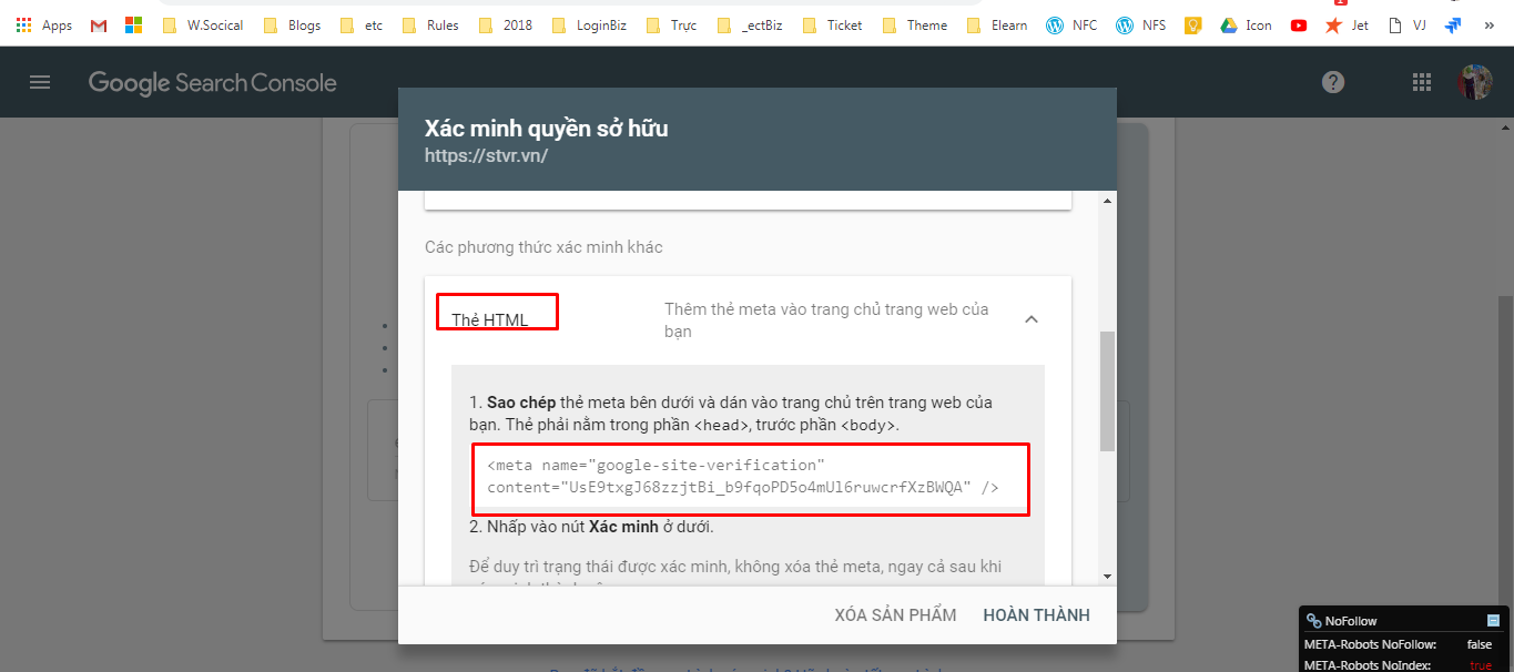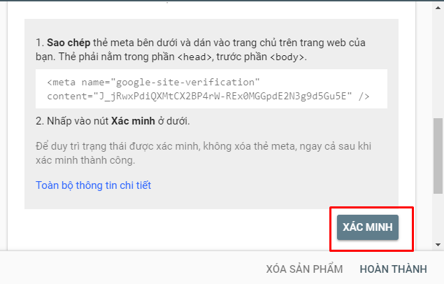 - Bước 4: Bạn quay lại màn hình Google Search Console ấn Xác minh là được bạn nhé